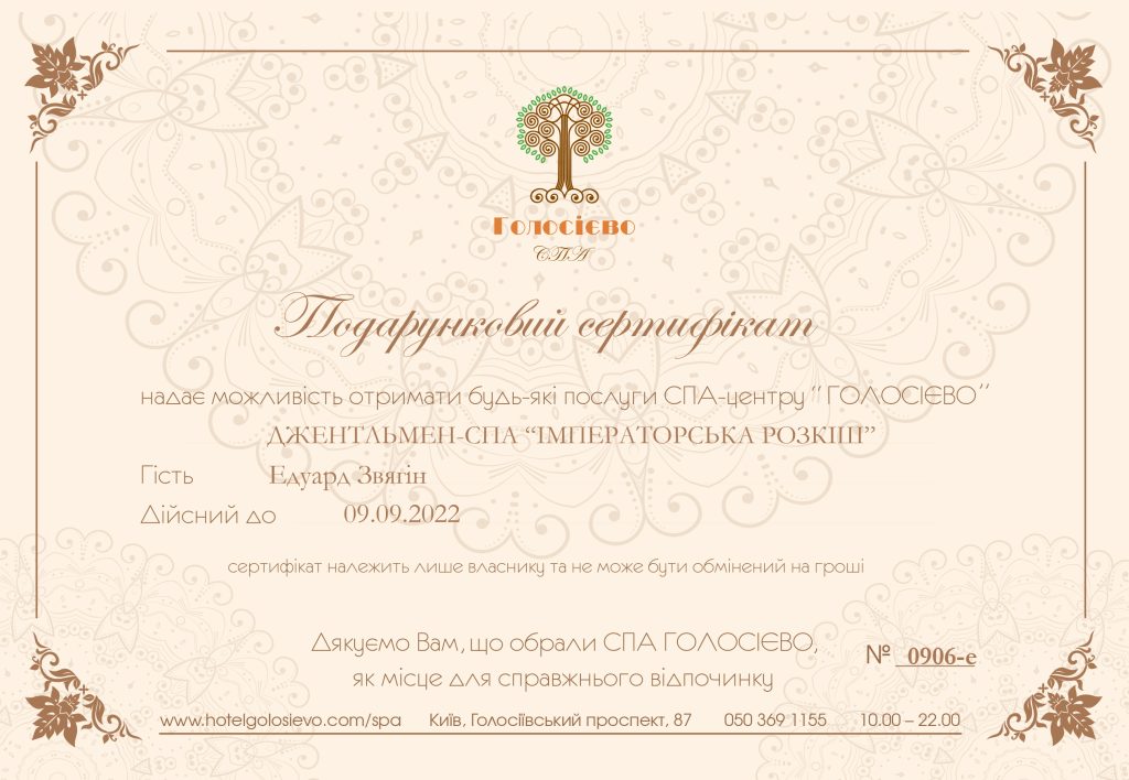 Подарунковий сертифікат в місці гармонії та відновлення СПА Голосієво.